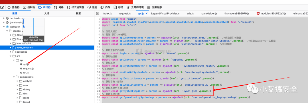 发现由Webpack打包的网站,然后直接查看原码,发现存在着直接获取系统所有api列表的API