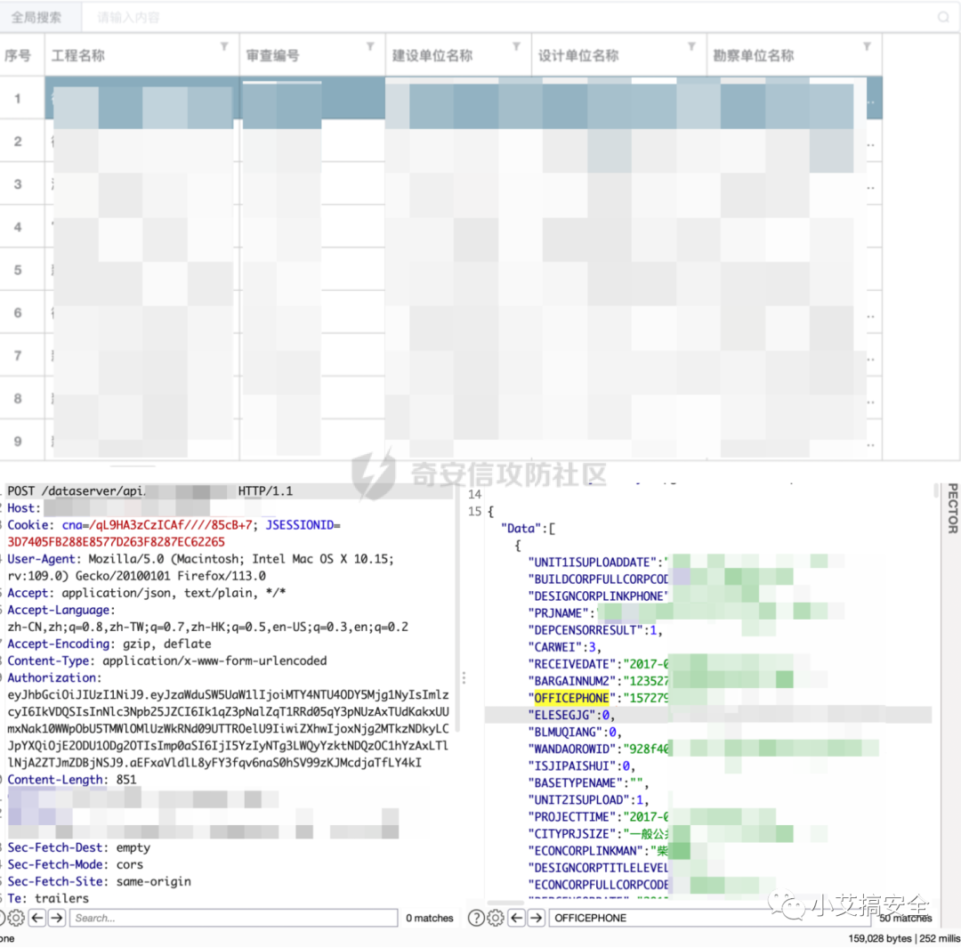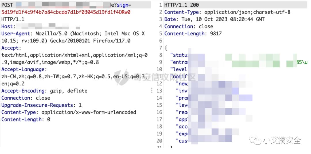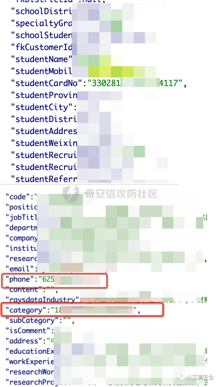 在安全规范欠缺和安全需求不明确的情况下,开放者有时为了方便,在设计过程中忽视后端服务器返回数据的筛选策略,直接返回数据对象的所有字段,然后在前端控制显示,即使在前端显示正常,但当攻击者抓包时就会发现其它数据。在实战环境中,此类漏洞出现频率最高,大部分接口会将诸如手机号之类的敏感信息返回,更有甚者直接将账号密码返回。