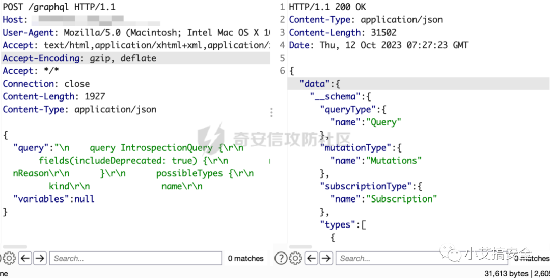 内省查询允许客户端查询GraphQL服务器上的架构信息,包括可用的查询、类型、字段等,以便客户端可以自动构建查询。这个功能本身是为了提高客户端的开发效率,但如果不加以控制,可能会导致接口信息泄露。GraphQL内省查询通常使用双下划线(__)前缀来标识一部分特殊的查询,用于获取架构信息,如:__Schema, __Type, __TypeKind, __Field, __InputValue, __EnumValue, __Directive等,