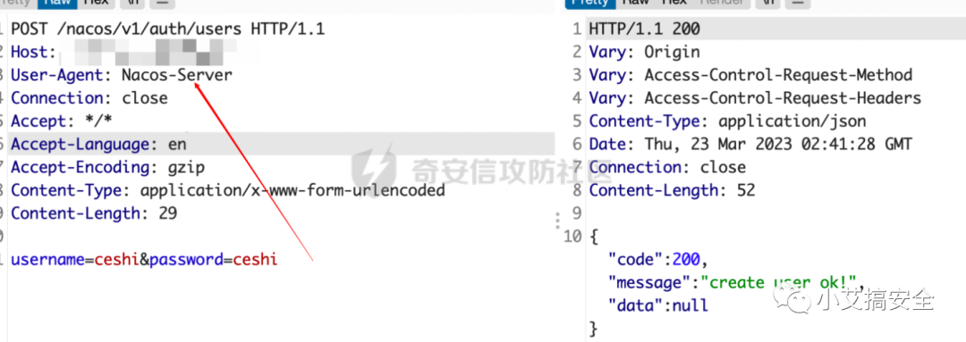 这个问题的根本原因在于开发者将User-Agent设置直接硬编码为"Nacos-Server",用于处理服务端对服务端的请求,因为攻击者可以伪造请求,将User-Agent设置为"Nacos-Server",绕过认证授权,从而访问未经授权的资源。
