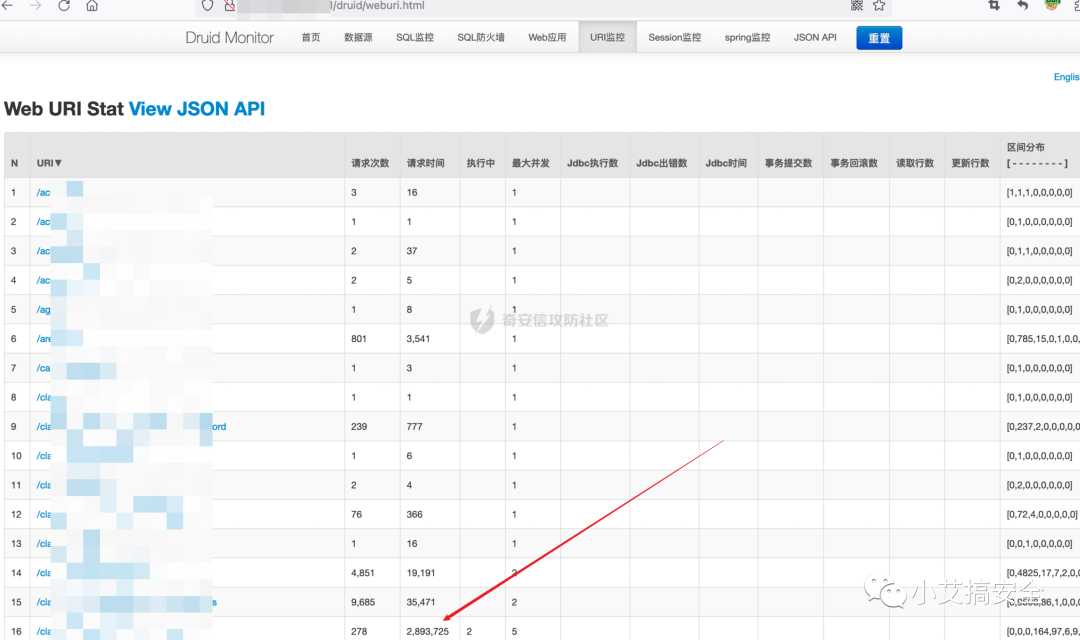 从URL监控和JSON API功能均能看到大量的接口信息,从请求时间和次数可判断数据量的大小和使用频率,进而进行未授权访问尝试。