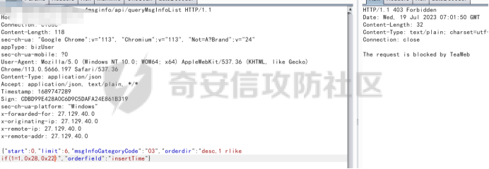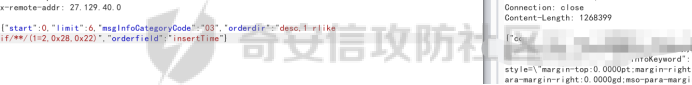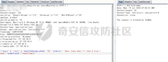 验签搞定了,而且存在注入(ps:oder排序注入,查询结果必须要有数据,空表查询的话,payload不会被触发)。使用布尔注入