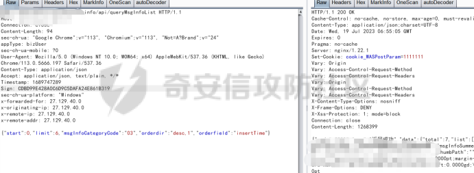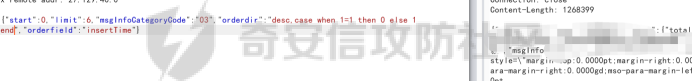 我的burp安装了HaE插件,自定义了一些容易出洞的关键字。发现这个主站,出现了很多排序的关键字,而且还没做映射(挺随意的)。(排序注入是sql注入中,高频出洞模块,目前mybatis对排序的方案中,只能使用${}传入排序字段,所以必定有注入。除非接口做了映射,例如:用户只能传 枚举类型参数 ,后台代码程序把这个 枚举类型参数 使用case when转化为排序关键字拼接到mybatis的xml文件中,不在 枚举中的参数,直接拼装default参数)