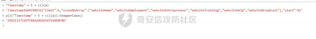 分析代码,它其实只用到了 2 个参数,post请求体(或者url传的参数)+时间戳。进行了一下字符串组装,然后md5加密转大写。