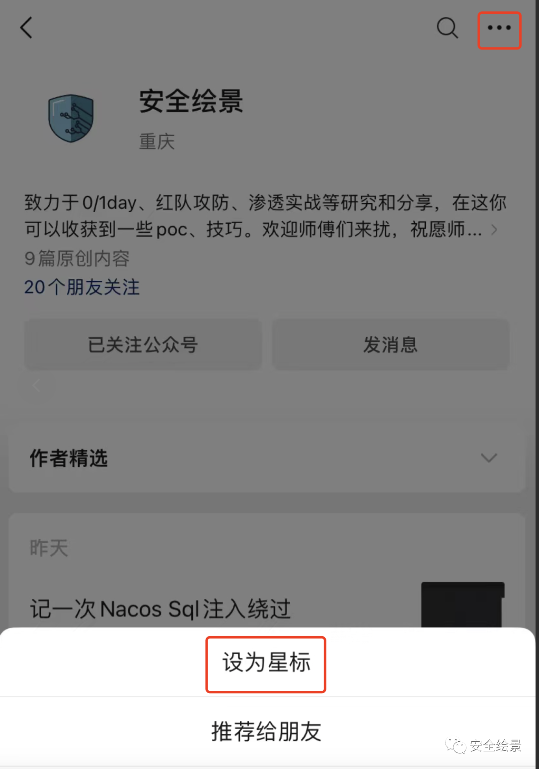 大家可以把安全绘景设为星标,这样就可以及时看到我们最新发布内容啦!