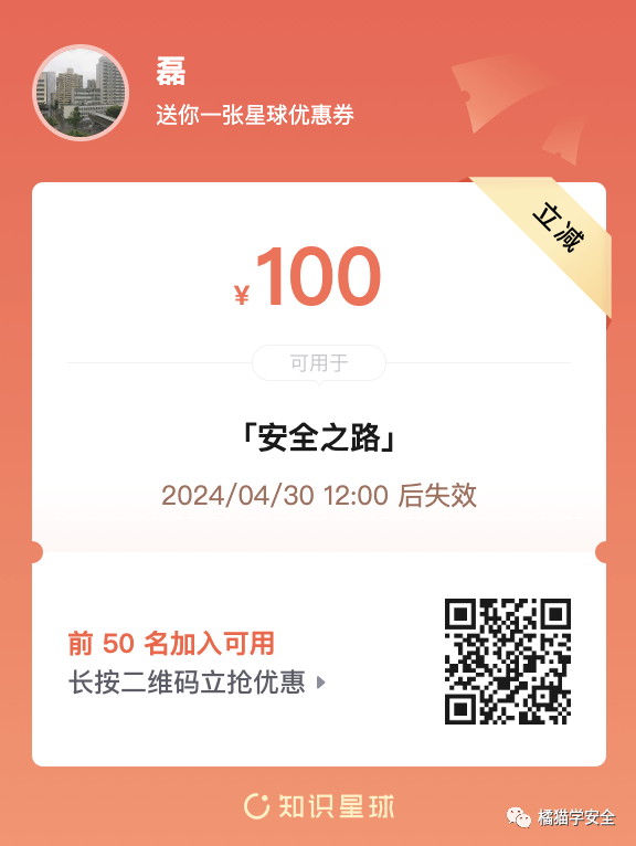 这是一个网安人的聚集地~为解决大多粉丝的提问,以及资源需求,特此联合几位师傅创办了知识星球;知识星球已经运营两年,内容大致为:(1)每日分享资料与工具,并进行了分类(2)创办了作业模块,偶尔发布作业与 2023-12-27 15:36:9 Author: 橘猫学安全(查看原文) 阅读量:21 收藏