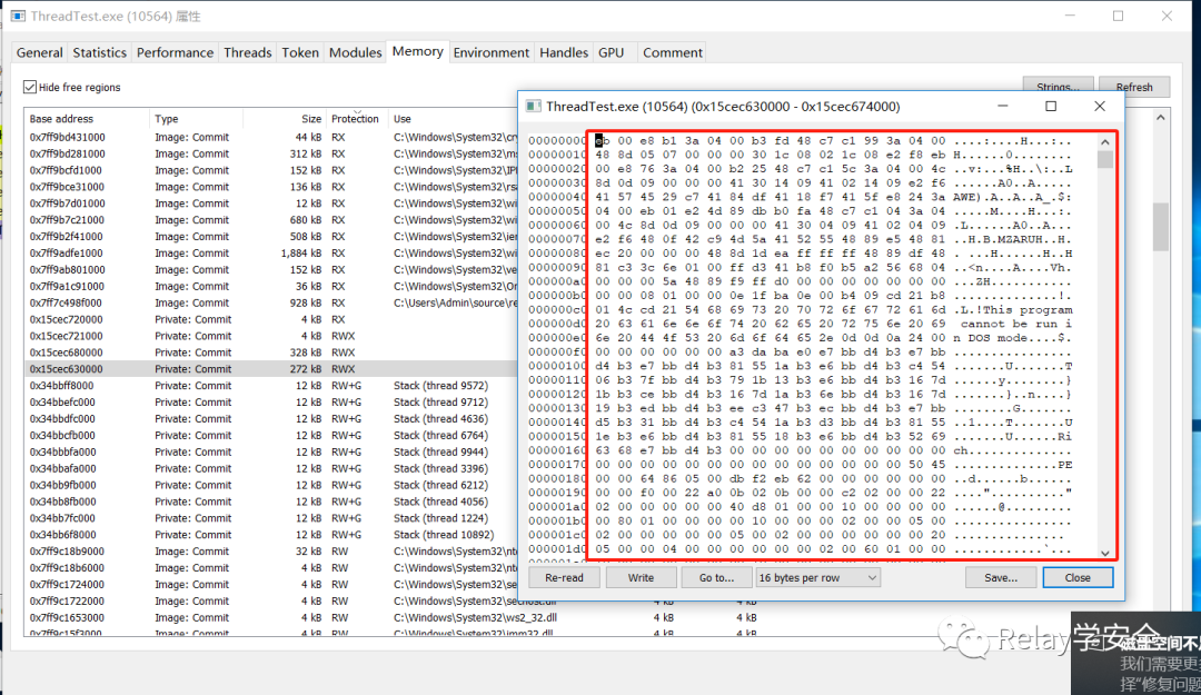 针对于各大安全厂商对私有内存的监控,就是我们之前使用VirtualAlloc/EX来申请的内存,最后执行shellcode如下图是RWX的内存区域,里面是我们的shellcode。