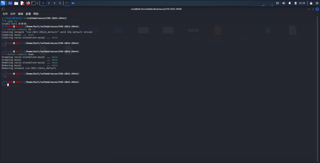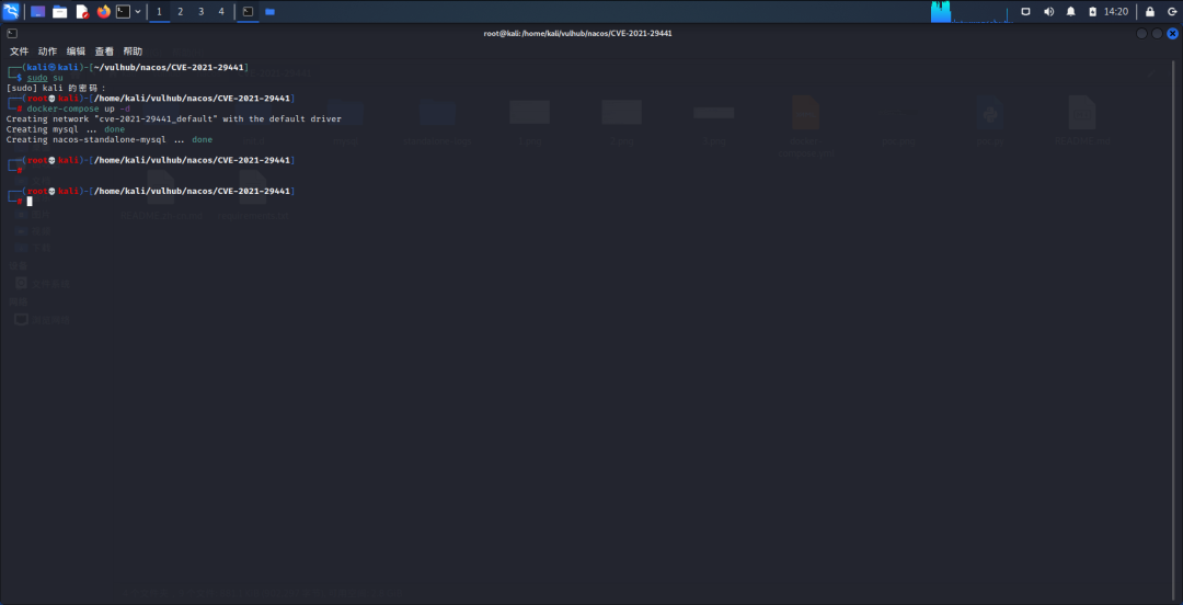 1.虚拟机安装一个kali,按照搭建地址上面的步骤一步一步安装docker容器,再把Vulhub下载到里面