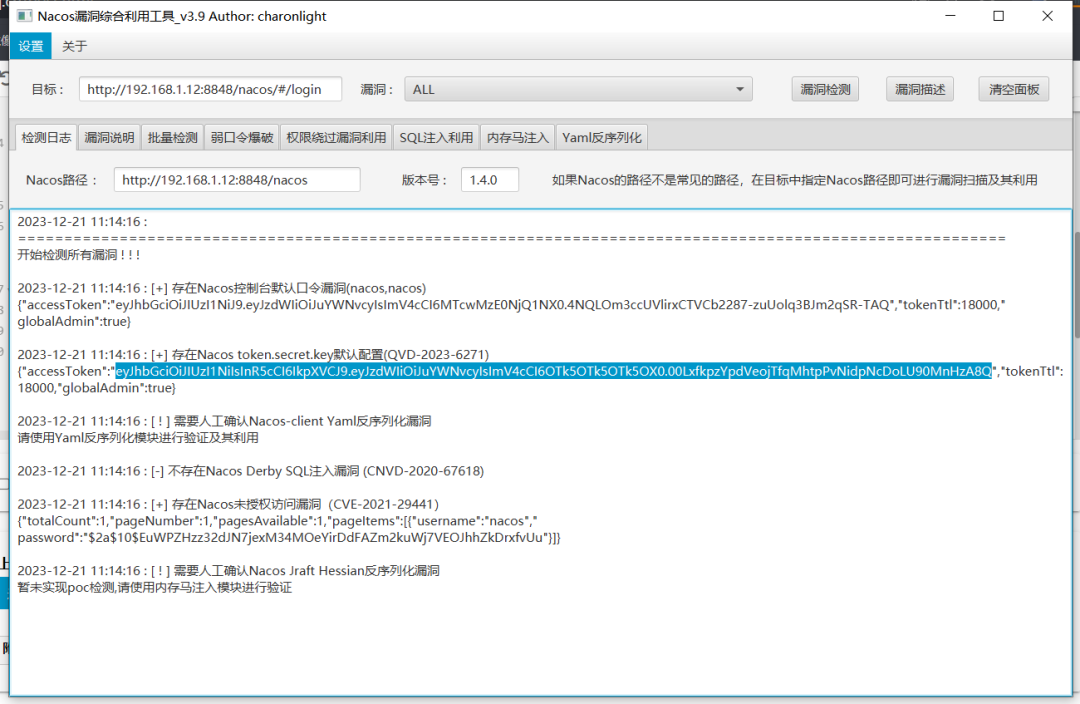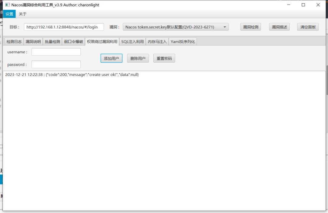 1.这款NacosExploitGUI_v3.9.jar非常简单好用,一键检测漏洞利用。