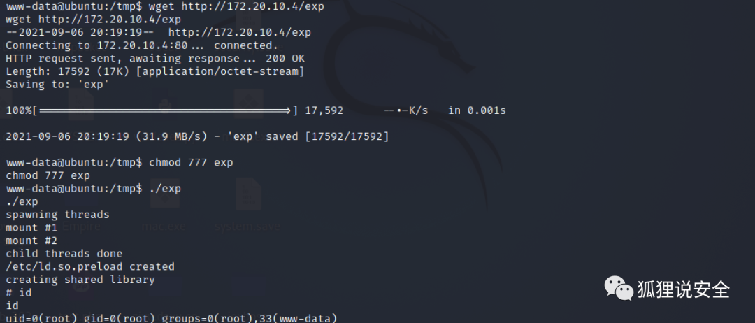 python -m SimpleHTTPServer 80下载该 EXP 并赋予执行权限