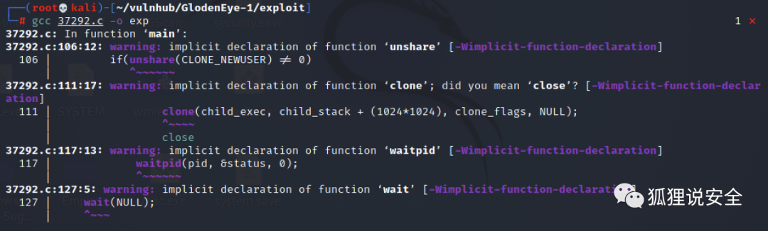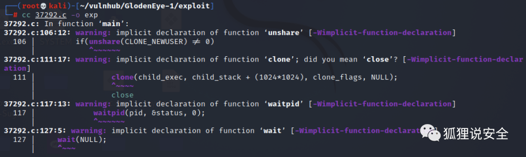 ./exp因此需要把源码中的 gcc 修改为 cc 后再进行编译