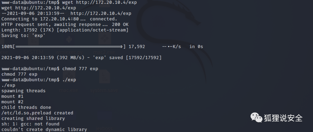 执行 EXP 失败,提示缺少 gcc