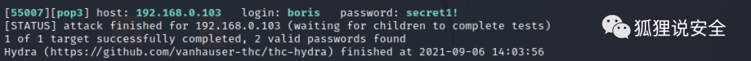 使用 hydra 以收集到的账号配合密码字典爆破 POP3 服务