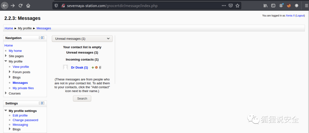 在My profile》Messages中找到 Dr Doak 用户的邮件