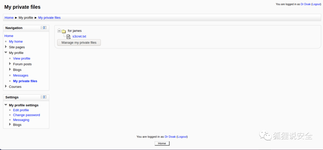 利用账号密码dr_doak/4England!可登录网站页面,其中s3ret.txt内容如下: