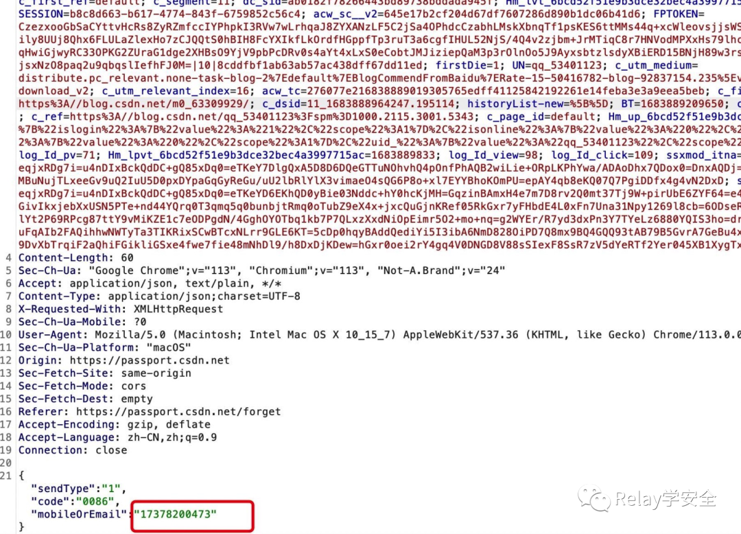 在burp对csdn这里找回密码进行抓包,这里说明一个如果你导出来的手机号太多的话,csdn fuzz可能就不行了,一般200左右个手机号都可以,只要你知道目标的省份 基本上导出来都不会超过200个左右。