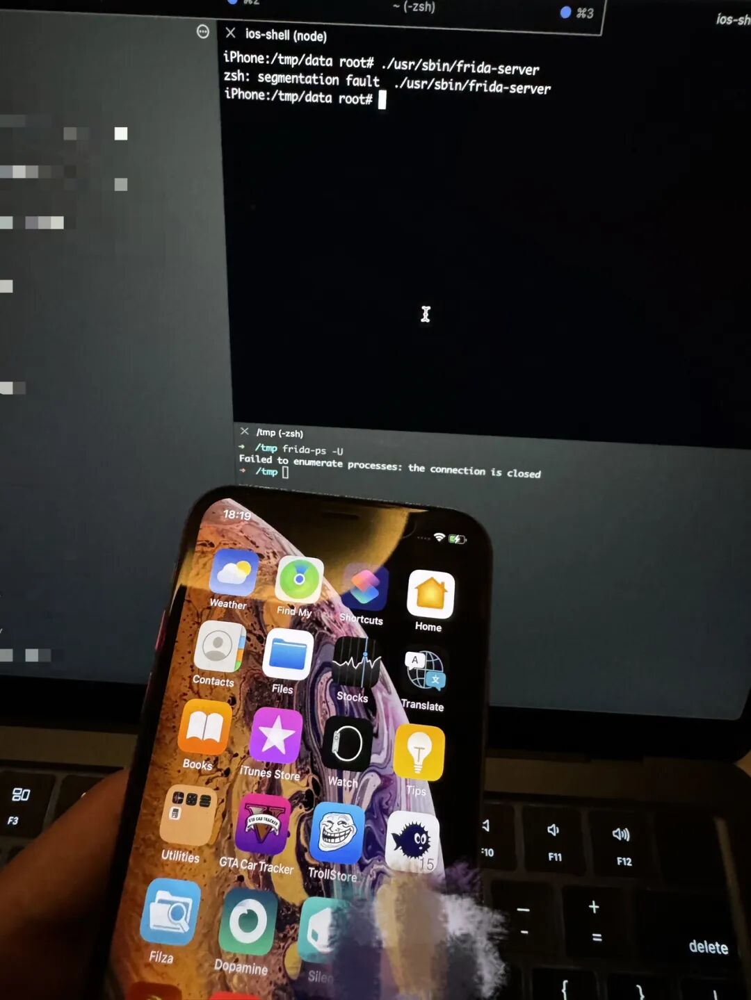 一开始直接手动运行 frida-server,干什么都崩。dpkg 之后倒是一切正常。毕竟是作者开过光的机器,很快就大概搞明白了怎么回事。但是解决方案比较麻烦,以后有空再搞。