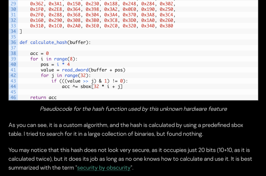 虽然算法看上去不复杂,但这部分对于软件来说完全是个黑盒。这算法和 sbox 是怎么搞到的就成了一个谜,也许漏洞利用的作者会通灵?