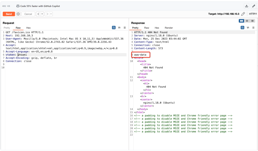 POST HTTP header vtoken: whoami (测试程序只允许使用 whoami 命令)