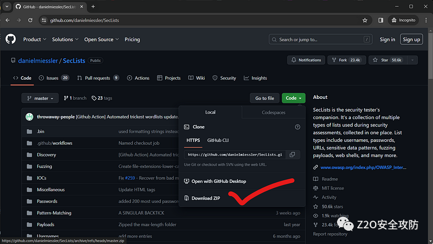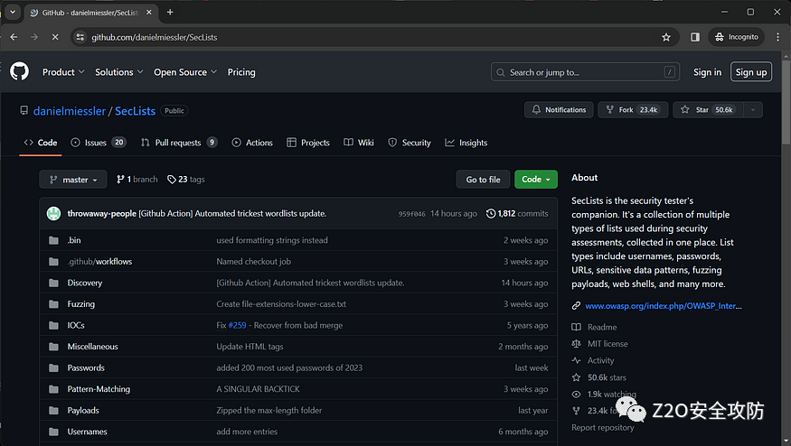 SecLists是用于道德黑客和网络安全的单词列表的强大资源。Dorks是在搜索引擎上查找特定信息的搜索查询。转到SecLists GitHub存储库:https://github.com/danielmiessler/SecLists。