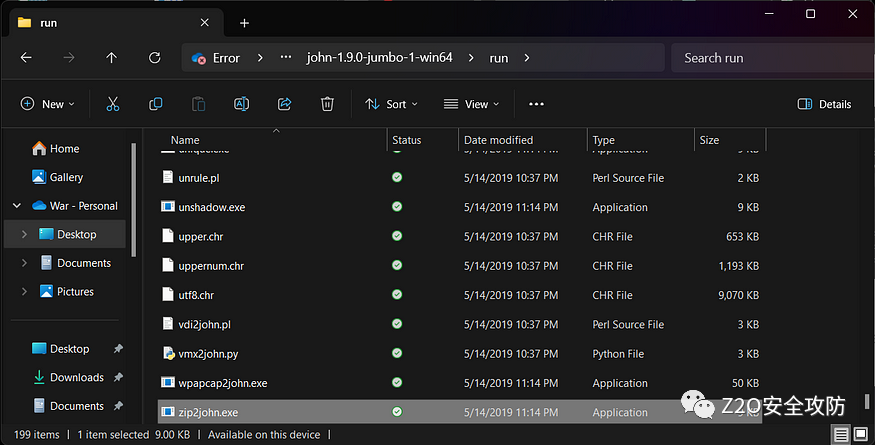 导航到下载文件中的“run”文件夹并找到“zip2john.exe”。