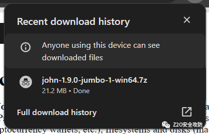 由于ZIP文件对密码的错误尝试没有限制,我们将使用一个名为“John the Ripper”的工具对其进行暴力破解,而不是猜测它。按照下面的步骤在Windows计算机上成功安装它。