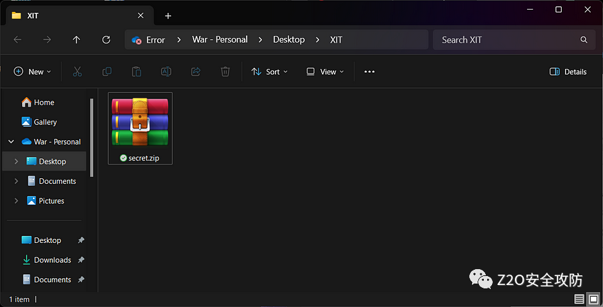 今天,我将教大家如何破解Windows机器上受保护的.ZIP文件的密码。为了更好地理解,我创建了一个名为“secret.zip”的受密码保护的ZIP文件,如下所示。我们将在本文中一步一步地破解它的密码。