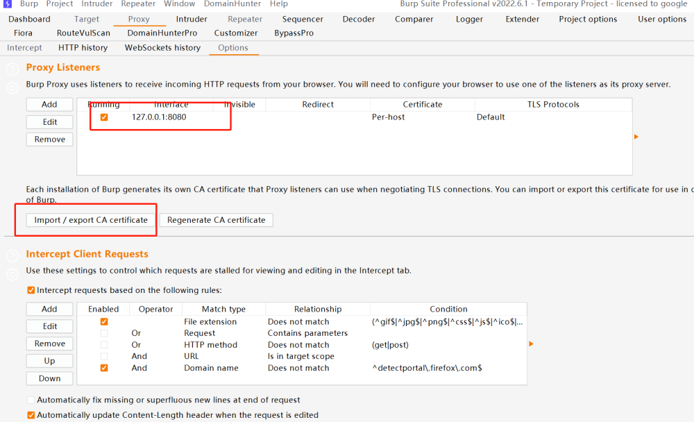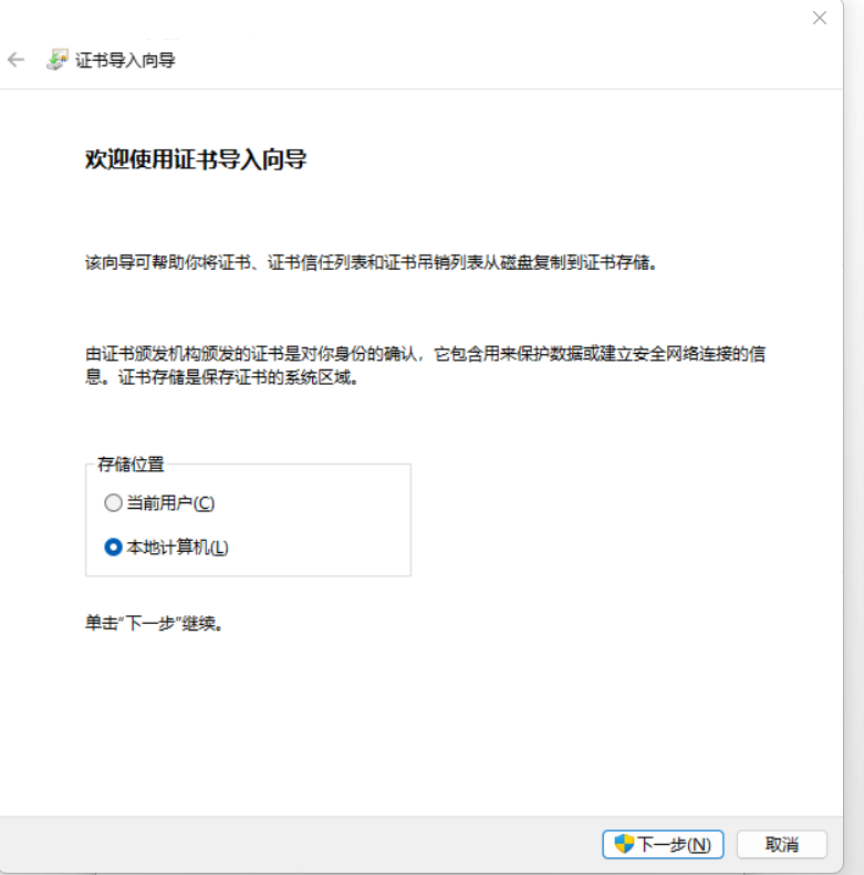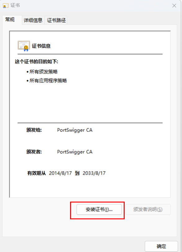 监听本地8080端口,导出证书,双击并安装在本地计算机上