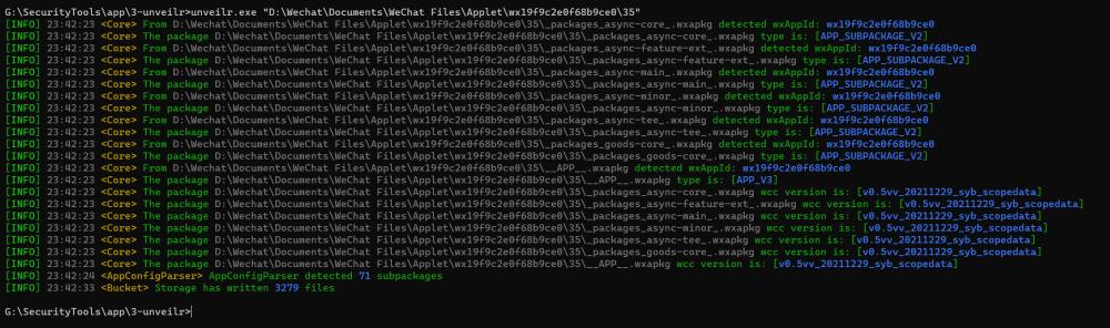 unveilr "路径"反编译成功后,会在当前目录下生成一个 APP文件夹,这里面就是小程序源码