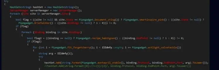 自2020年年中以来,除了FOXSHELL作为代理流量的手段外,我们还观察到了一个相当复杂的独立被动后门,它是用.NET编写的,旨在部署在IIS服务器上。它被类似于FOXSHELL的技术混淆,并伪装成System.Drawing.Design.dll。