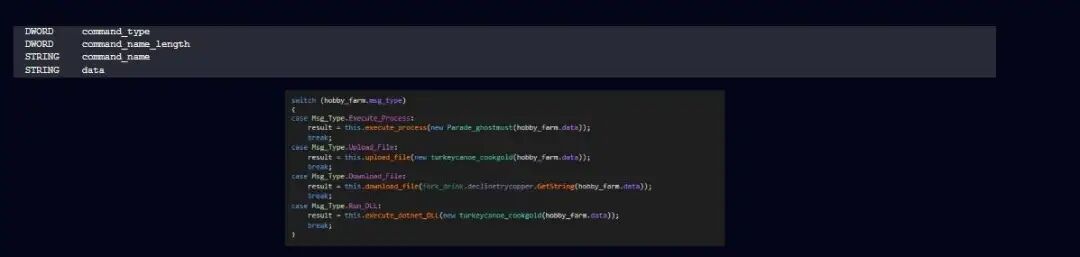 在解密消息的数据后,恶意软件会按照以下顺序对其进行解析: