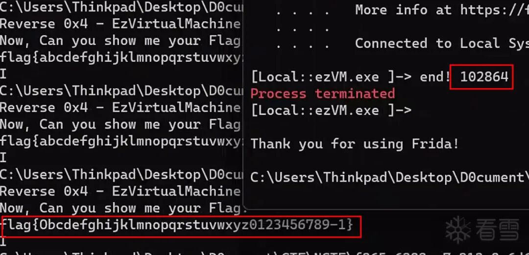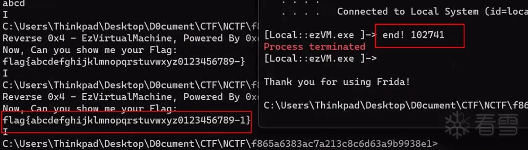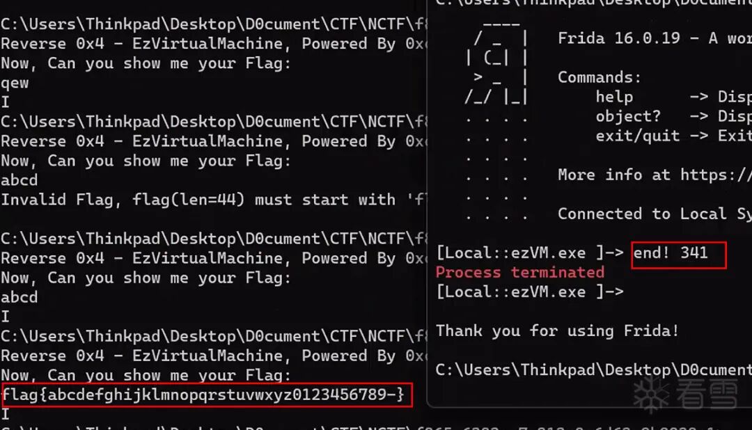 print("try index:",index ,"chr :",i)session = frida.attach("ezVM.exe")