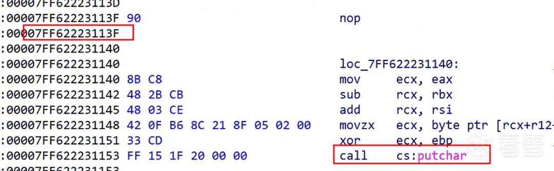 其中hook的两个位置分别为opcode分发和putchar的位置。
