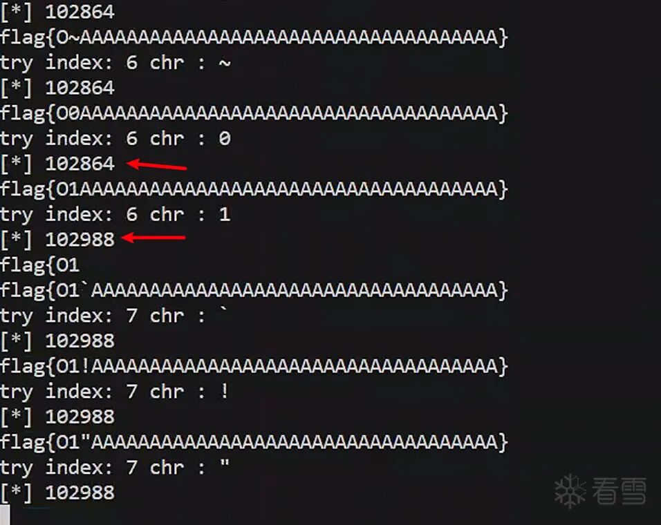 可以看到成功爆破出索引为6位置字符为1 (插桩数增大)。