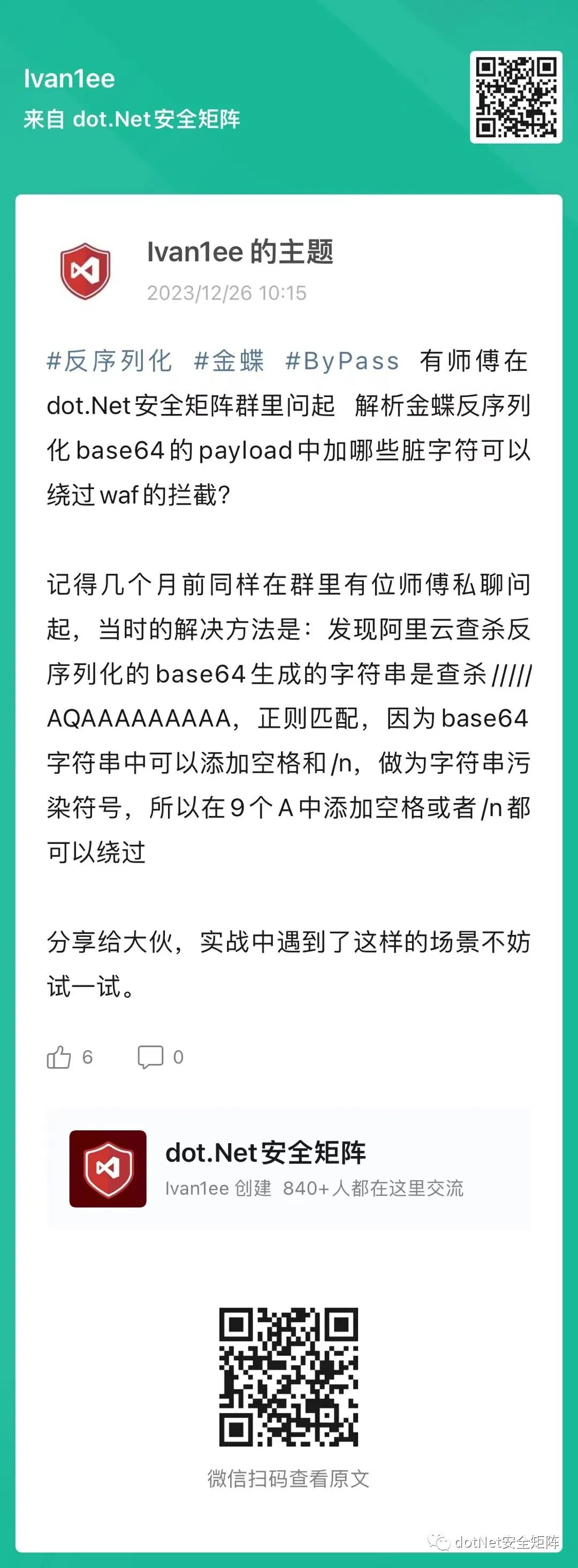 为了更好地应对基于.NET技术栈的风险识别和未知威胁,dotNet安全矩阵星球从创建以来一直聚焦于.NET领域的安全攻防技术,定位于高质量安全攻防星球社区,也得到了许多师傅们的支持和信任,通过星球深度连接入圈的师傅们,一起推动.NET安全高质量的向前发展。经过运营团队成员商议一致同意给到师傅们最大优惠力度,只需199元就可以加入我们。