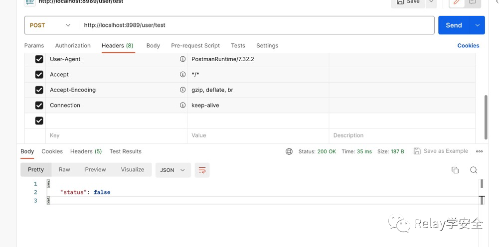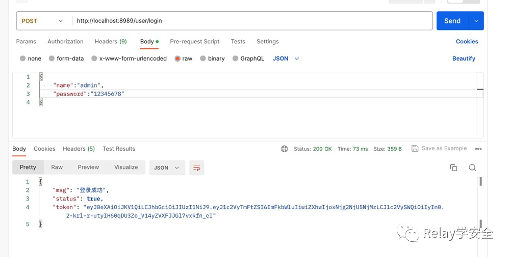 比如说我们现在访问Login,他会给我们返回一个签名。(这是postman测试工具),然后我们去访问test接口。