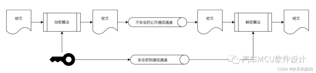 对称密码体制,又称为单密钥密码机制,其基本特征为加密密钥和解密密钥相同,模型如下: