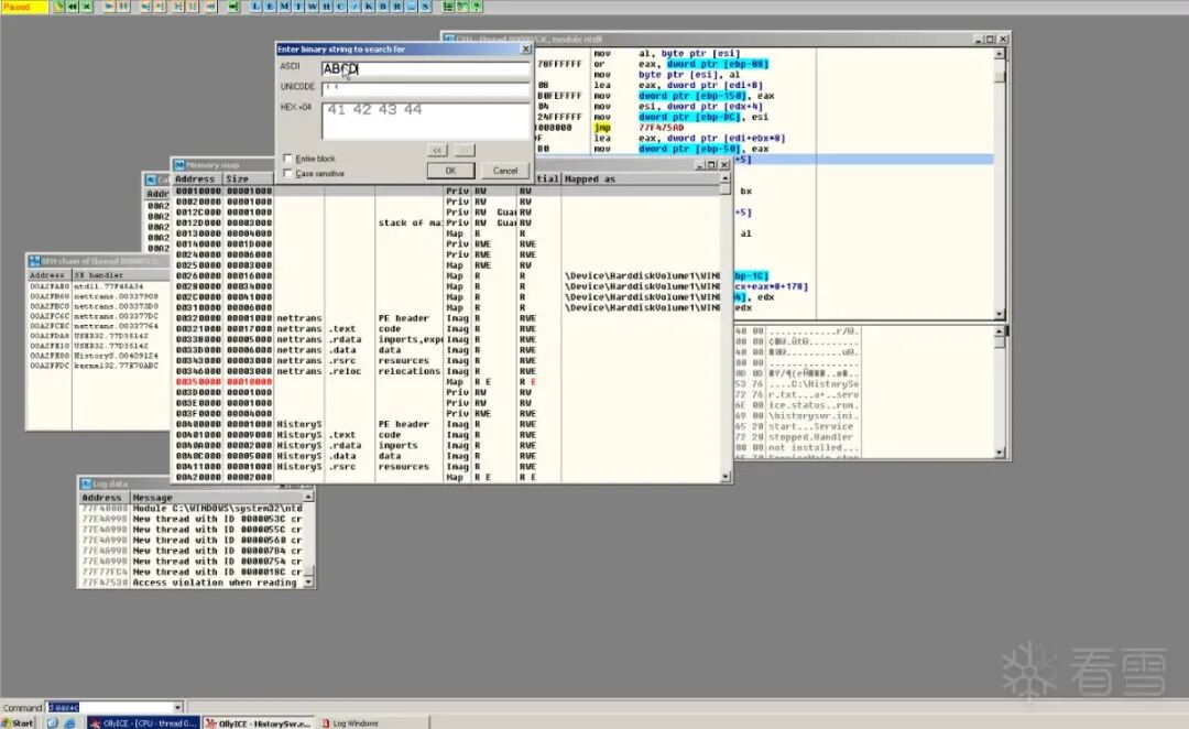 这表明 HistorySvr.exe 程序中的漏洞已经被触发且产生影响,只是 shellcode 并未在目标靶机中运行,程序执行未跳转到指定 shellcode 位置。
