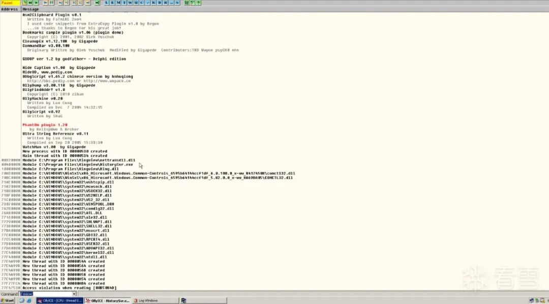 我们可以看到目标靶机中的kingview服务已经停止,并且异常调试工具已经启动。