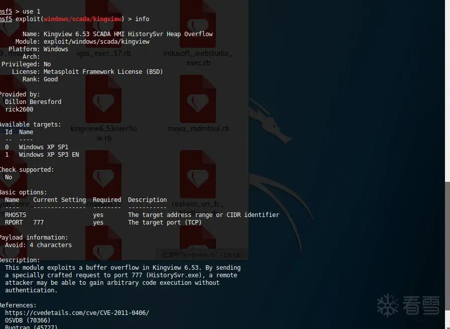 将 rb 脚本存放至 metasploit的相应安装目录中进行调用。例如:/exploits/windows/scada。