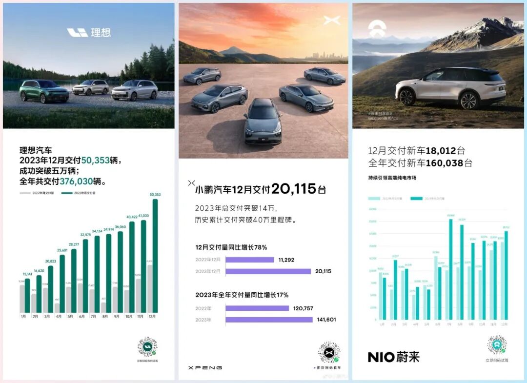 1 月 1 日,港交所公告显示,百度关联方 Moon 按照此前签署的协议,终止对 YY Live 的股权收购协议。根据公告,Moon 曾于 2020 年 11 月 16 日与欢聚集团就 YY 在国内视频娱乐直播业务签署股权收购协议,并约定如未在最后期限日之前完成交易交割,交易的任何一方有权终止协议。截至 2023 年 12 月 31 日,即协议最终截止日,股份购买协议规定的交割前提条件未能全部满足。对此,欢聚集团发布公告称,已获百度关联公司发出的终止 2020 年 11 月的股份购买协议的通知。YY 直播向百度的出售已于 2021 年 2 月 8 日基本完成,且某些事项仍有待未来完成,但百度在通知中声称,其已行使终止股份购买协议的权利取消了交易。欢聚集团正在寻求法律建议,并将针对百度的通知考虑其可以采取的所有选择。新能源造车 2023 年成绩单
