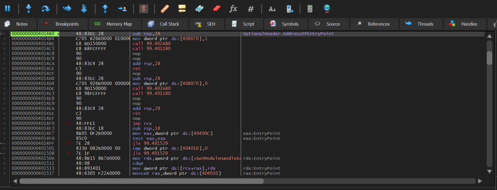 我们也可以用X64dbg实现同样的事情,但是对于shellcode来说,这是一个更复杂的过程。也可以用X64dbg实现同样的事情,但是对于shellcode,这也是一个复杂的过程。