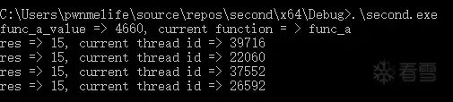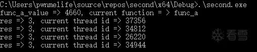 cout << "res => " << res << ", current thread id => " << std::this_thread::get_id() << endl;