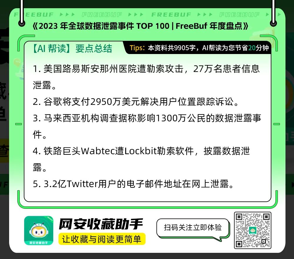 2023 年全球数据泄露事件 TOP 100 | FreeBuf 年度盘点