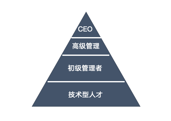 先来说说为什么不是新的技术人才进不来而是老的技术人才被淘汰呢?首先是岗位随着工作年限的变化,也在不断的更迭,企业内部的升迁符合金字塔模型: