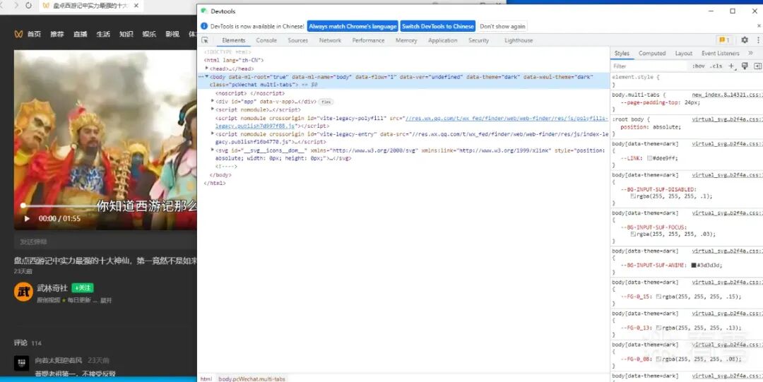 在正式开始逆向之前,我们首先需要能够在微信视频号中打开开发者工具,由于微信默认肯定是不会启用的,所以我们要对微信的某个动态链接库进行小小的修改。
