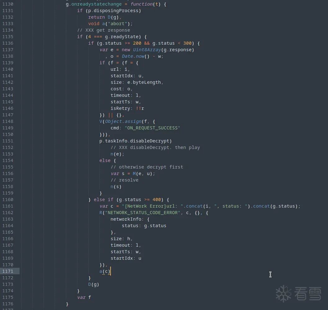 这个时候,写过Javascript XMLRequest的人可能就很熟悉这个了,在完成所有callback设置之后,发送请求用的就是.send(),所以往上翻,我们可以找到如下的返回值处理。