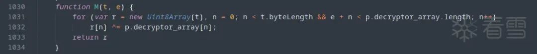 函数M非常的简单易懂,把数据和decryptor_array进行异或即可。如果当前的startIdx大于decryptor_array的长度,则不进行异或,不改变原有数据。